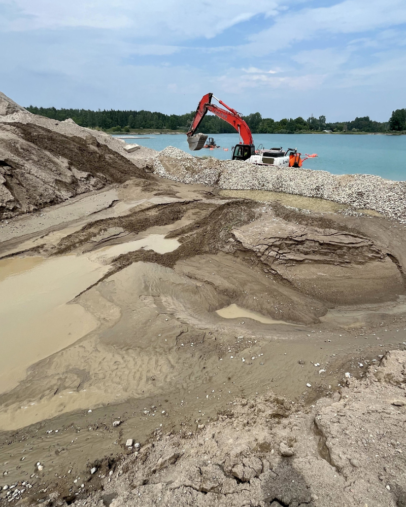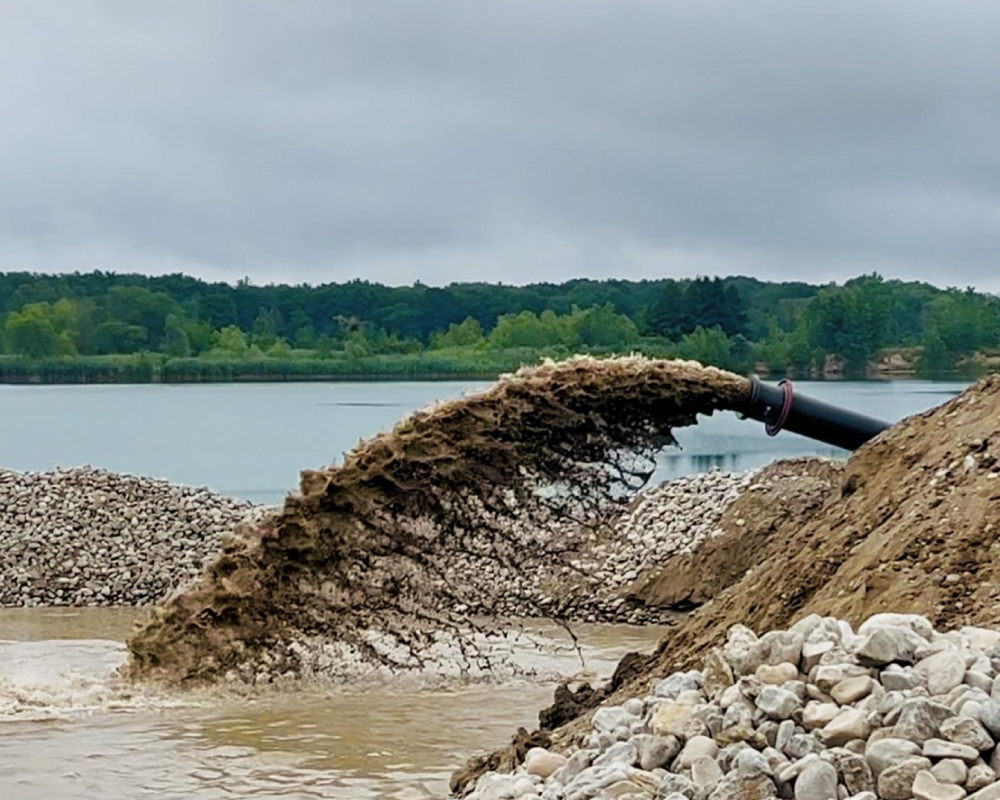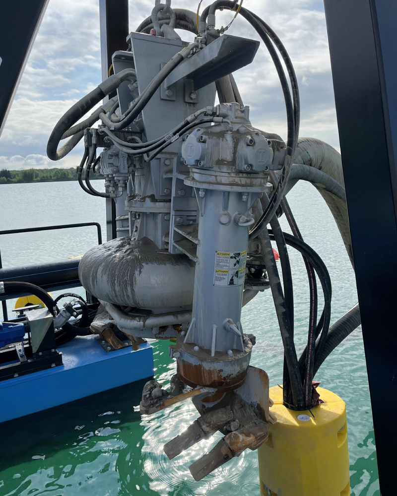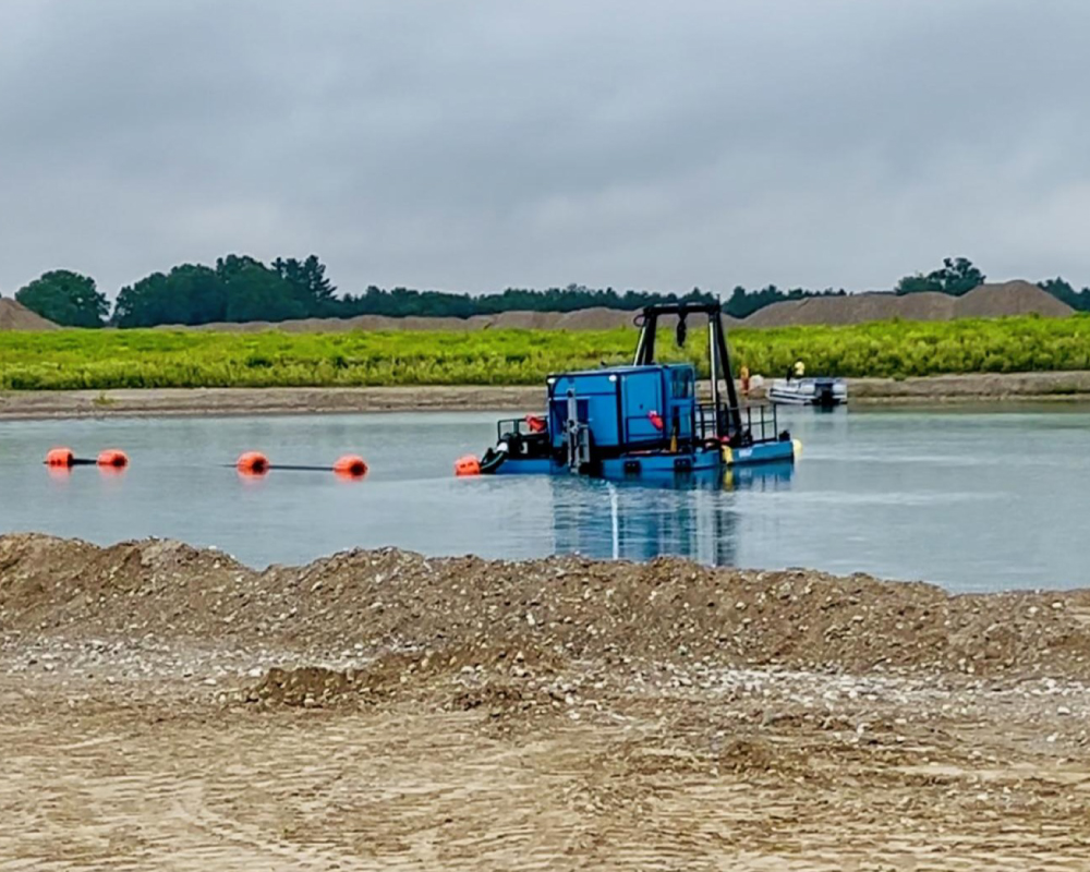 Our client, a sand and gravel producer serving construction and manufacturing relied on a traditional underwater excavation method: stripping land, casting a bucket, dragging material, piling, drying, then loading and hauling with multiple trucks. Rising costs, distance from the plant, and dragline depth limits made this process inefficient.